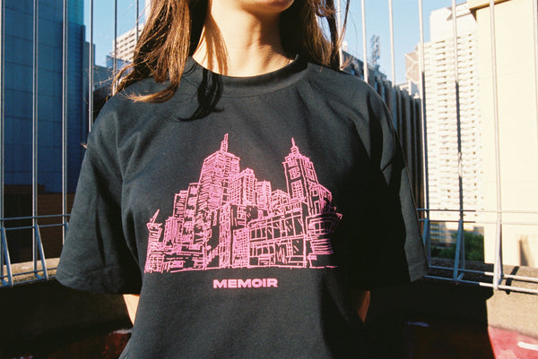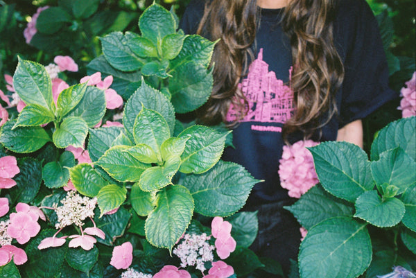 Third iteration and we just getting warmed up. This one features a bright magenta print on contrasting navy tee.